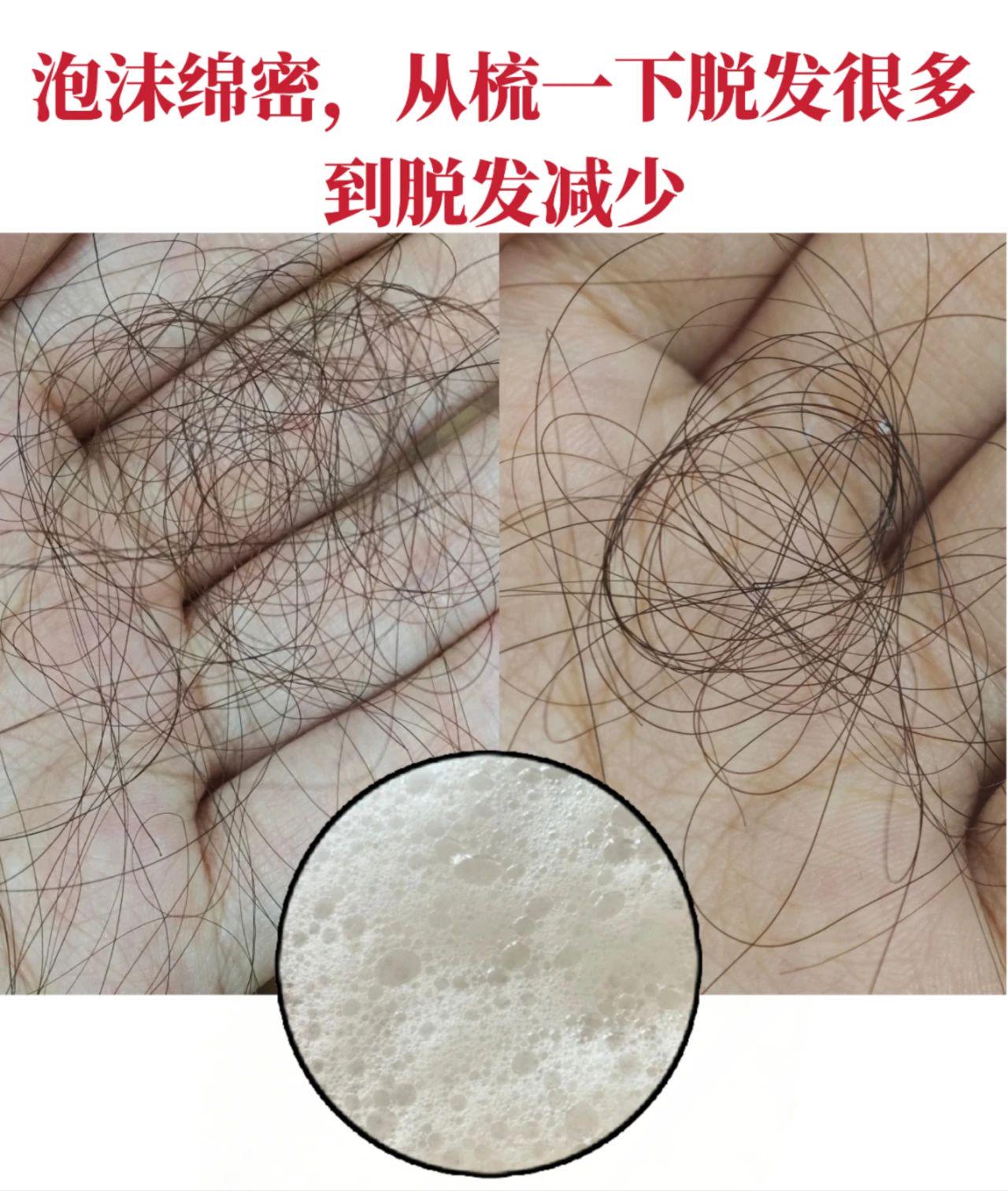 主要功效是防脱固发,洗感是比较水润的乳液,要是干搓容易搓不开,和LG的蜂胶很像,第一遍比较难起泡,会有人不太适应,但是加水之后表现还算不错,泡沫变得出奇的细腻、丰富。包裹着每一根发丝,冲洗之后是比较顺滑的,整个过程的洗感还不错。吹干之后头顶比较蓬松,一点都不假滑。发丝也不是那种干枯毛躁的,反而还挺水润。