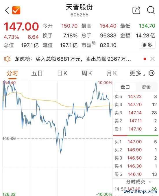 截至11月27日申银优配,天普股份收盘价为147元/股,最新市盈率为605.87倍,最新市净率为24.43倍。