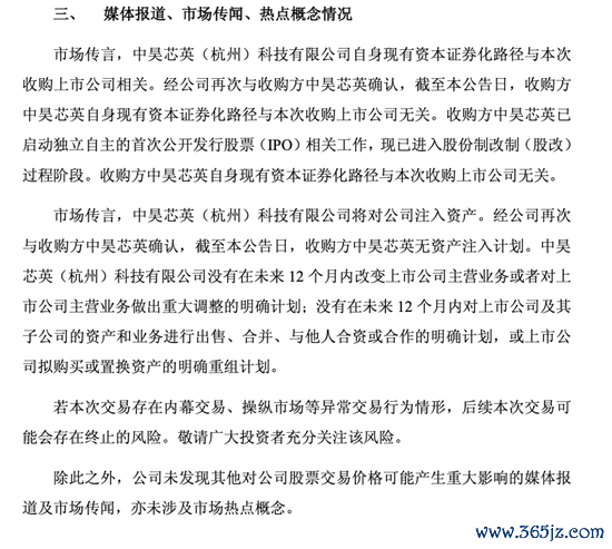 对此,天普股份表示,经公司与收购方中昊芯英再次确认,截至目前,收购方中昊芯英已启动独立自主的首次公开发行股票(IPO)相关工作,现已进入股份制改制(股改)过程阶段。中昊芯英自身现有资本证券化路径与本次收购公司无关。截至目前,未来36个月内,收购方中昊芯英不存在通过公司借壳上市的计划或安排。