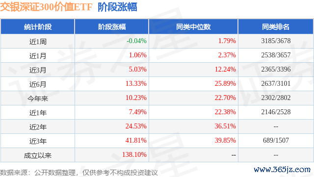 本站消息富灯网配资,日前交银深证300价值ETF基金公布一季报,2025年一季度最新规模0.69亿元,季度净值涨幅为2.22%。