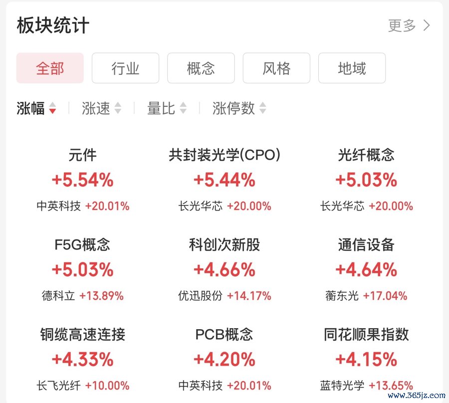 半导体板块的圣邦股份、炬光科技涨幅超过10%。PCB(印制电路板)板块的金安国纪、广合科技涨停,连做MLCC(多层陶瓷电容)的国瓷材料都涨了11%。
