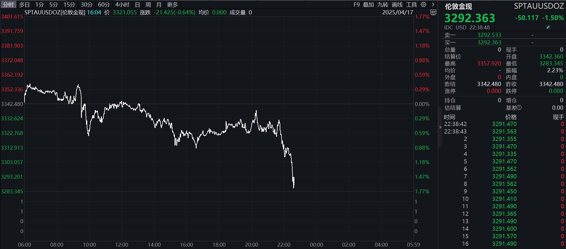 滚动更新丨现货黄金失守3300美元;国际油价持续下挫亚马逊跌超2%,通用汽车跌超2%,小鹏汽车跌超4%。