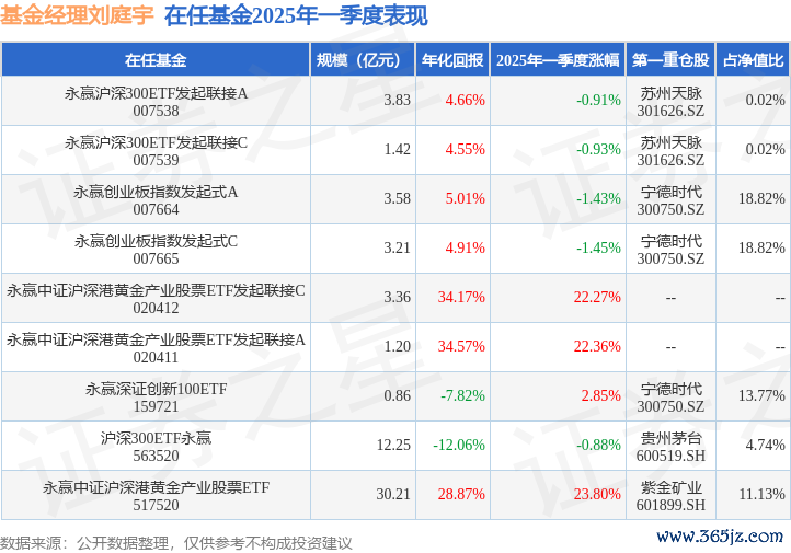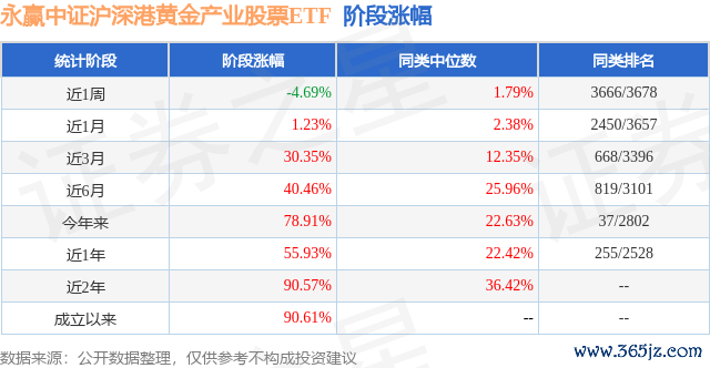 本站消息,日前永赢中证沪深港黄金产业股票ETF基金公布一季报忠程配资,2025年一季度最新规模30.21亿元,季度净值涨幅为23.8%。